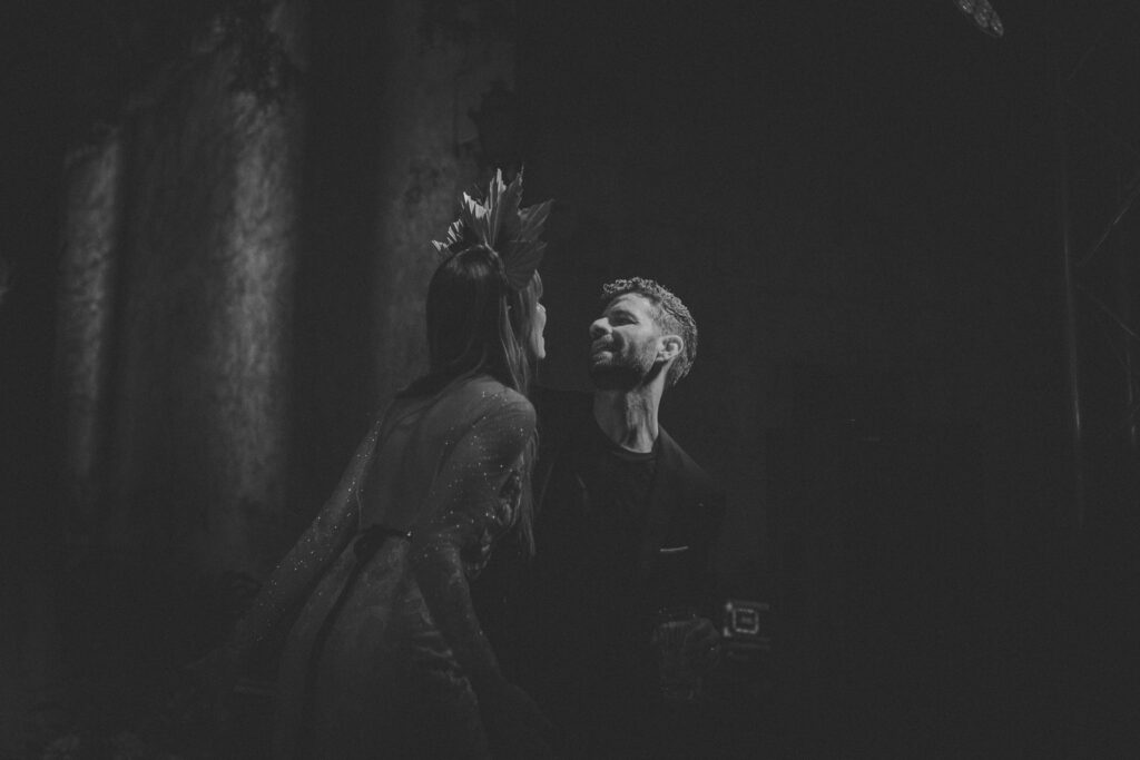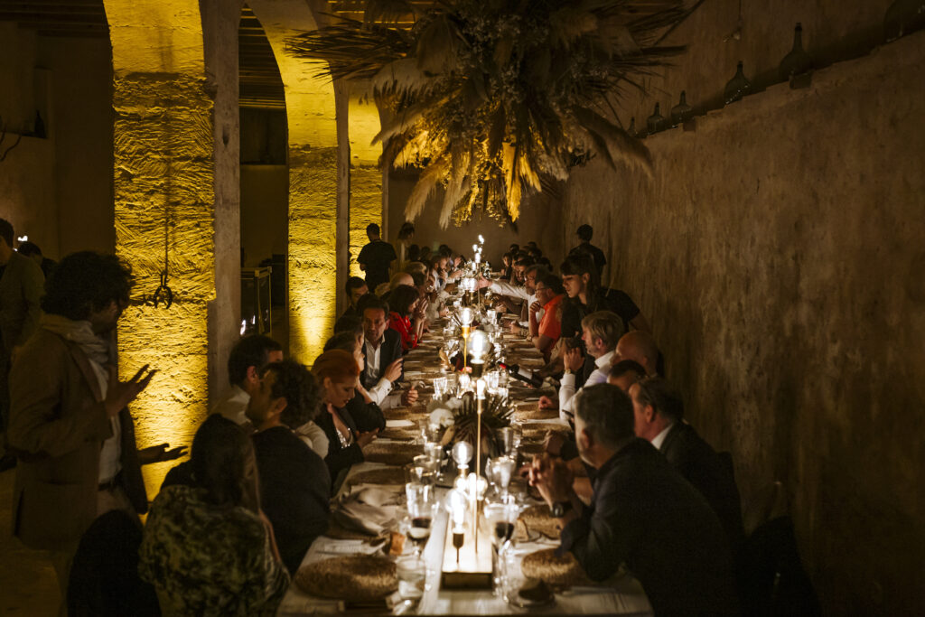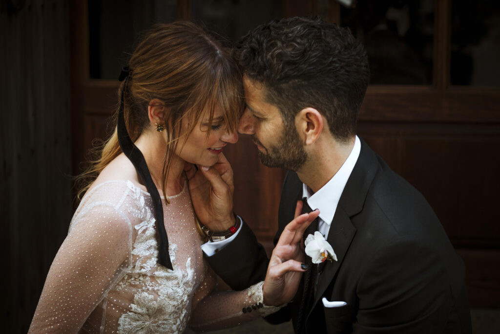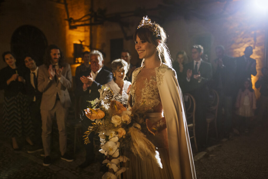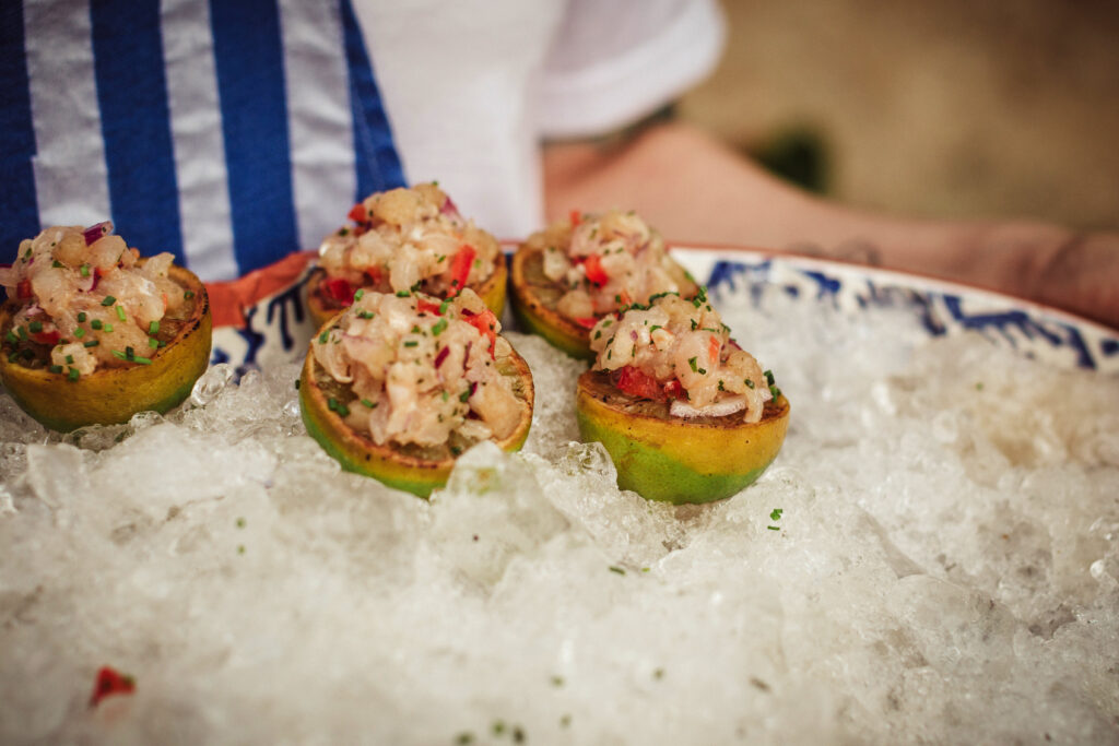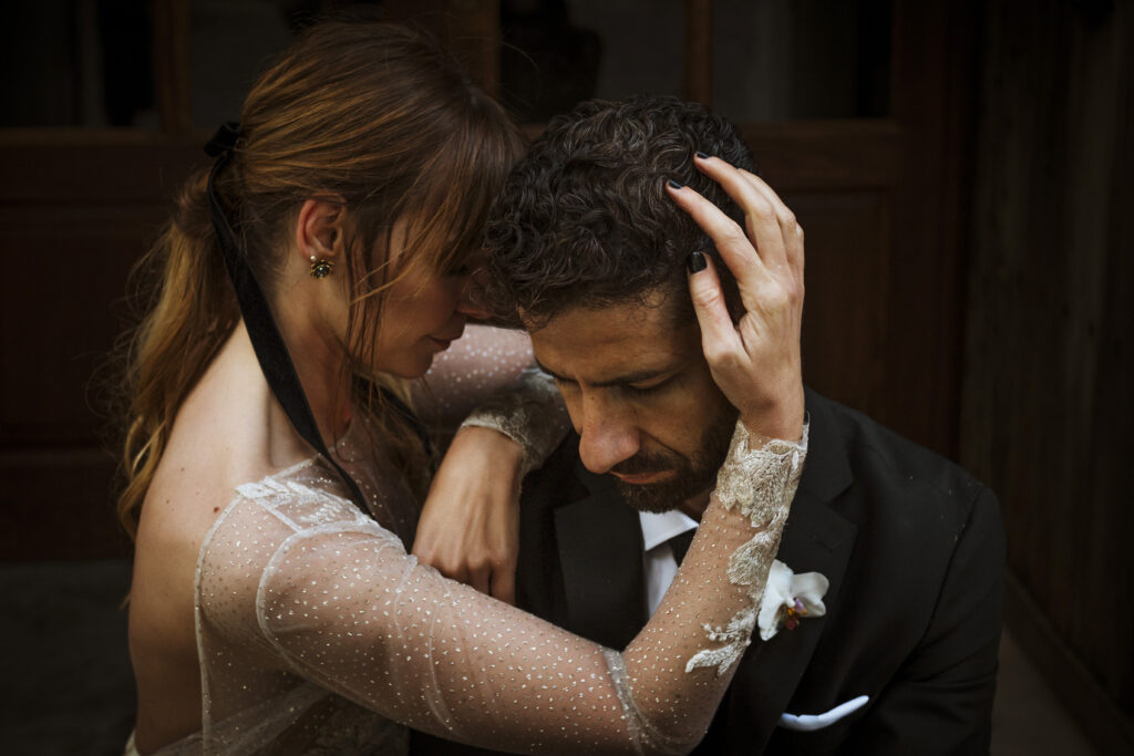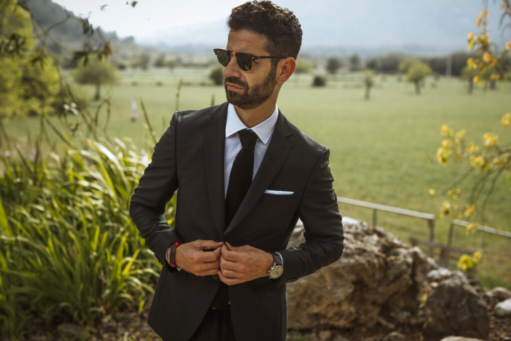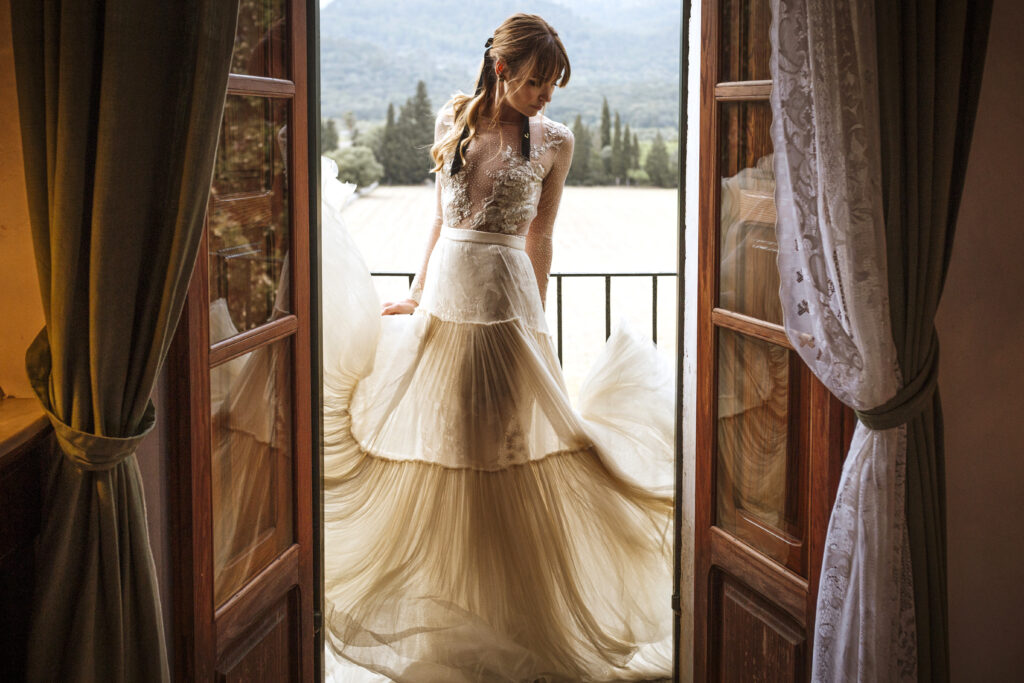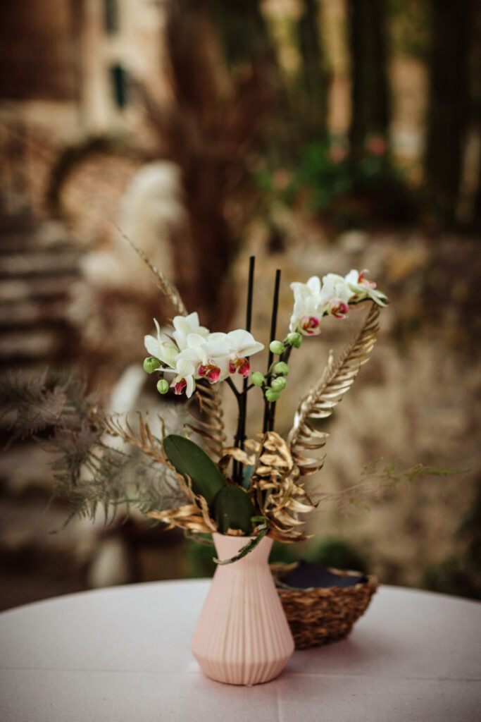 Quizá lo que tuvimos claro des de el primer minuto era el lugar. Estaba claro que elegiríamos Mallorca y dentro de nuestra isla, esta preciosa finca es de los lugares que no nos cansamos de ver. Hemos estado allí ya para decenas de bodas y, día tras día, su luz, su encanto, su carácter y autenticidad nos re-enamora. Y aunque en un principio pensamos en celebrar una boda de día, en seguida entendimos que para conseguir el ambiente que buscábamos debíamos cambiar algunos tiempos. Queríamos una ceremonia con luces, quería una entrada muy íntima donde la atención se centrara solo en lo importante, queríamos empezar la fiesta bebiendo, bailando y con muchas risas. Así que invertimos los horarios para empezar con un estupendo cocktail de bienvenida que Lili y Salva crearon expresamente y sirvieron con maestría. Luego seguimos por dos horas de aperitivo con infinidad de manjares alrededor de grandes barras de bar para finamente darnos el sí quiero después de la puesta de sol.