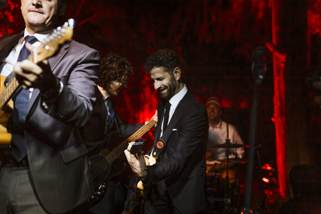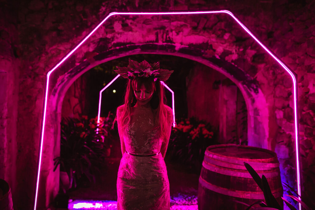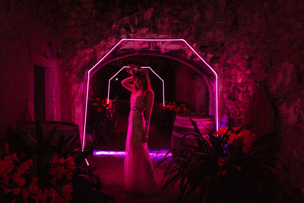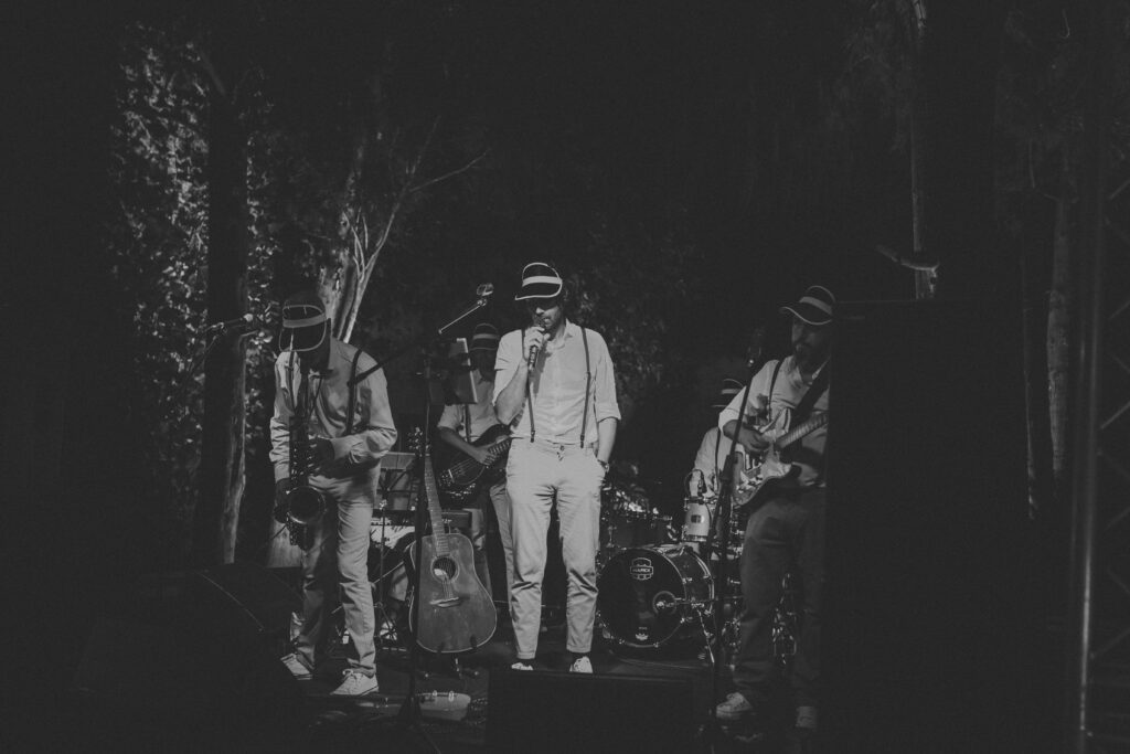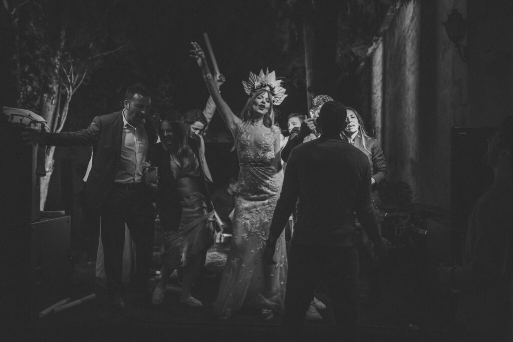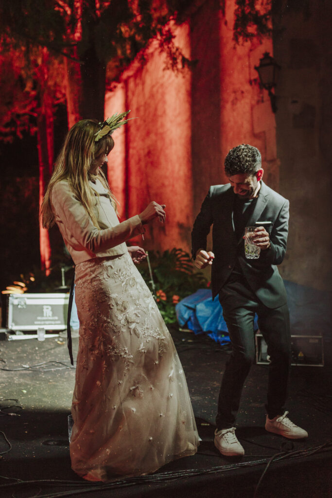 La música vino primero de la mano de Paco Colombás que puso sus mejores músicos a nuestra disposición y tuvimos música en vivo des de él inicio hasta la primera parte de la fiesta. Sin duda, un gran acierto. Su banda fue brutal!!!! Pero lo que me dejo sin respiración fue ver subir al escenario a mi marido y un par de cómplices para regalarme el mejor de los conciertos. Algo que no olvidaré jamás. Y para rematar la noche Toni Llobera nos mantuvo en la pista de baile hasta altas horas de la madrugada sin parar de bailar. Además, él y su equipo fueron los artífices de una transformación brutal del espacio. En dos horas desmontaron la ceremonia para montar escenario, iluminación con neones, pista de baile,….sin palabras.