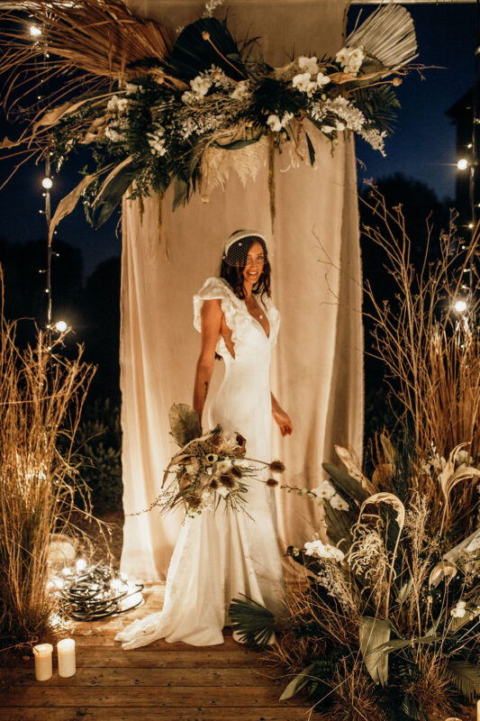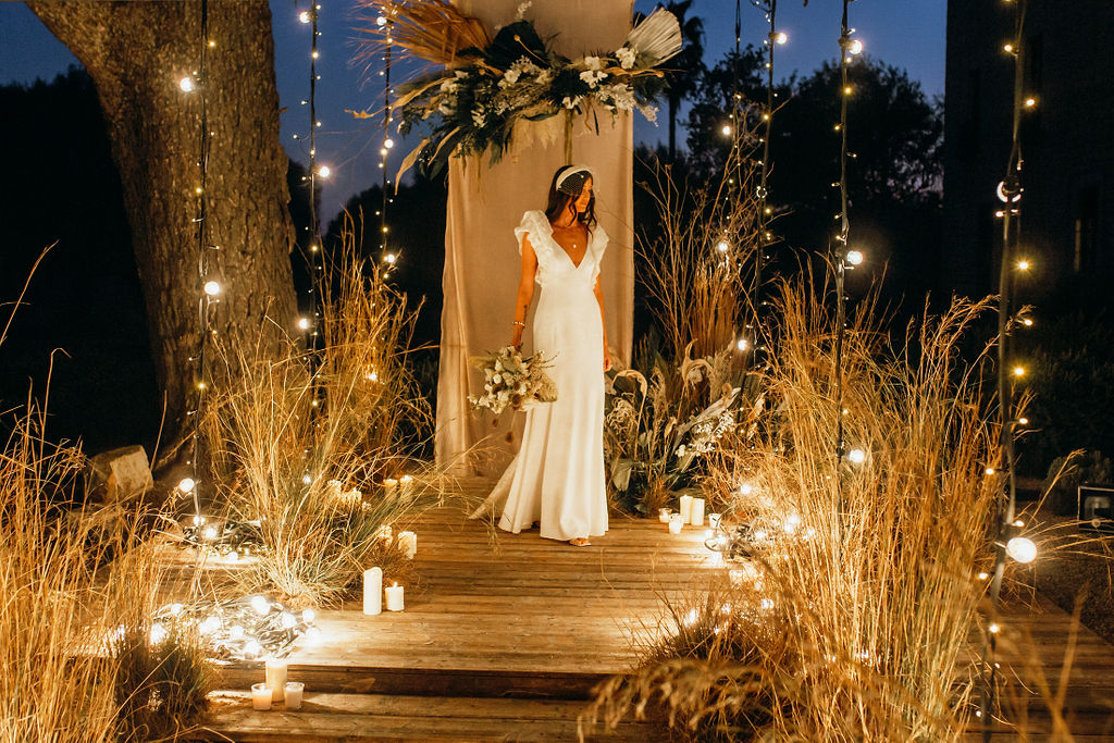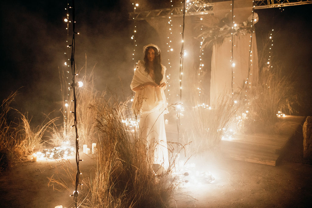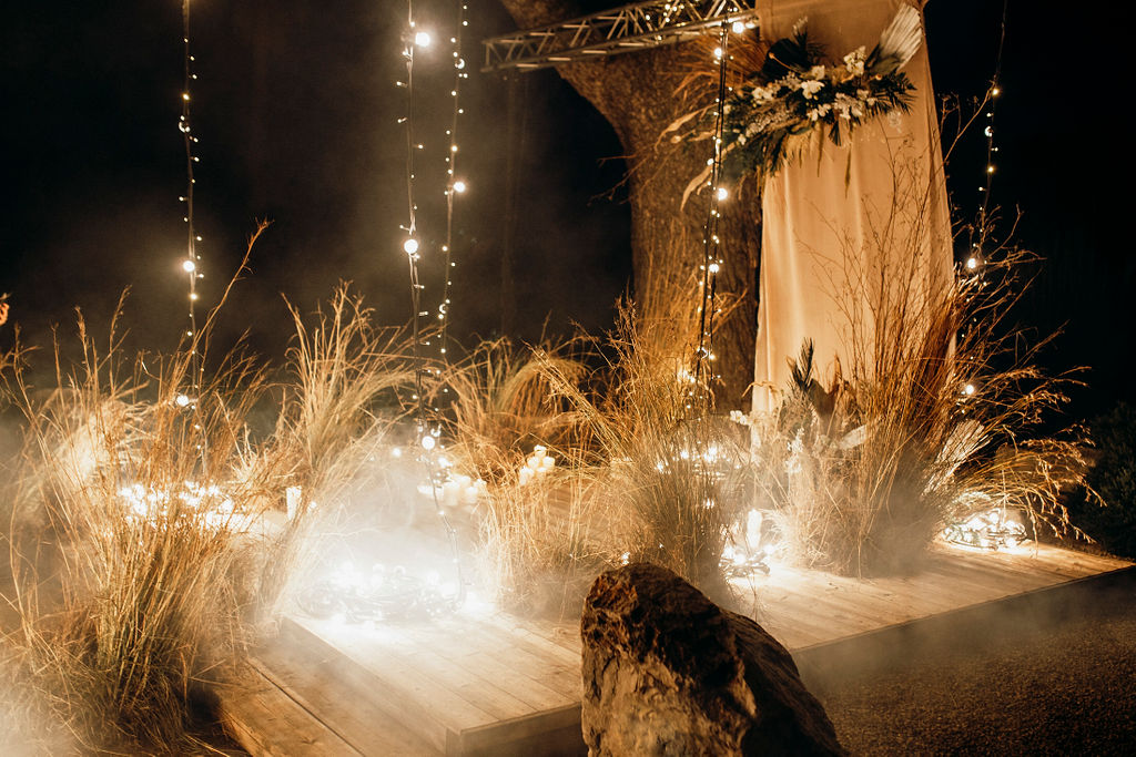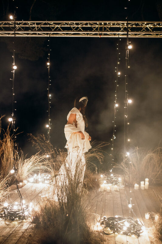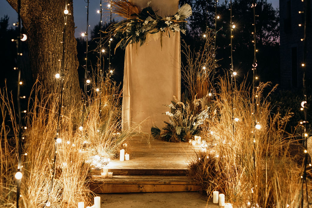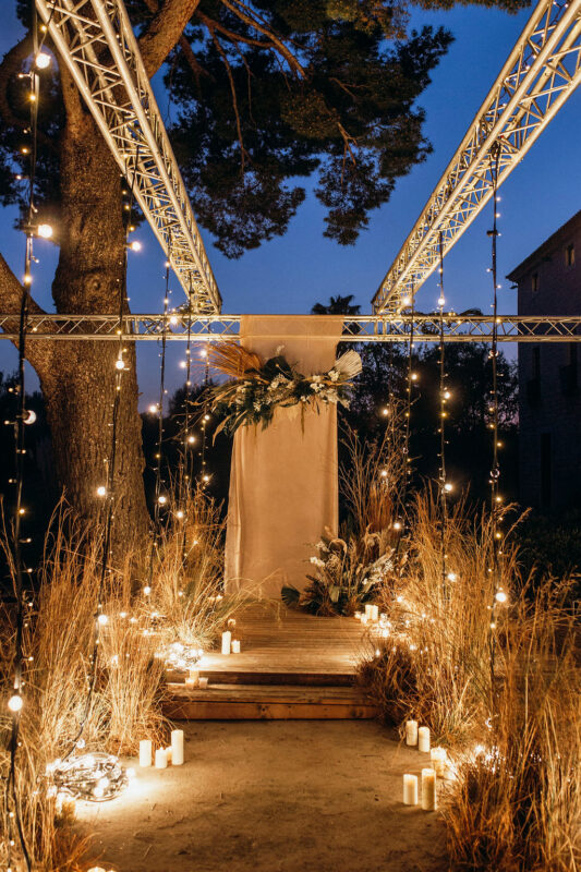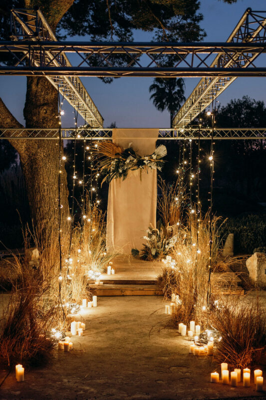 At sunset, magic was the main character with a stage full of lights and candles that stood out on a base of floral elements also in contrast between dry and fresh flowers. The work of LoMusic spectacles and Francis Garcia was impeccable.