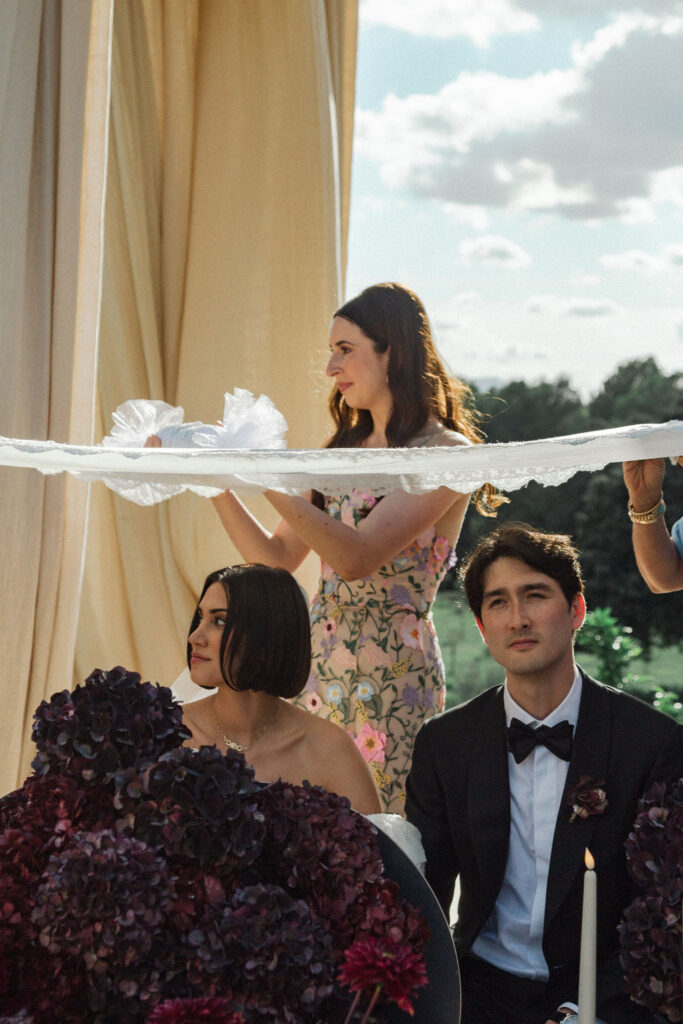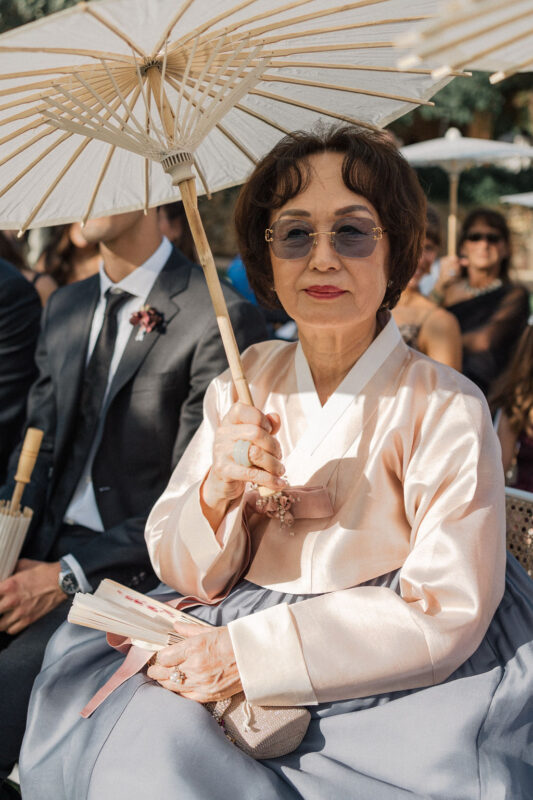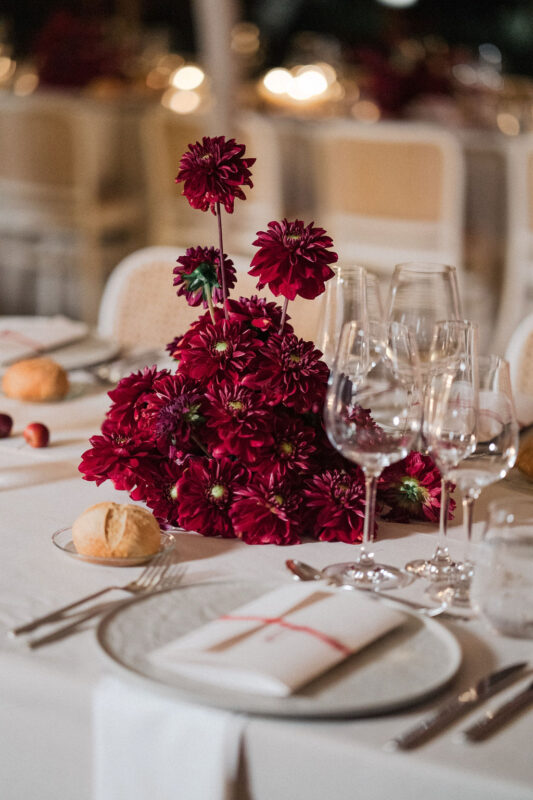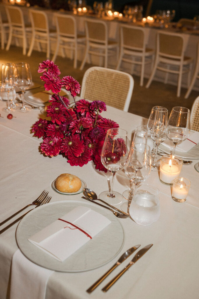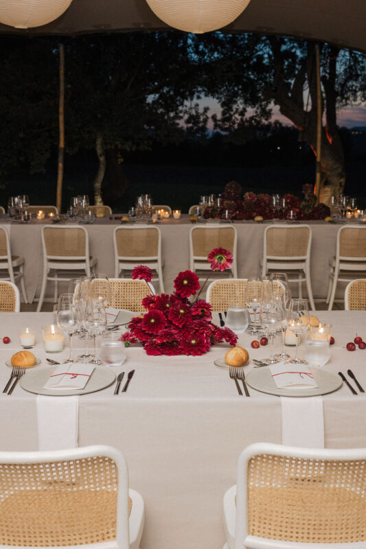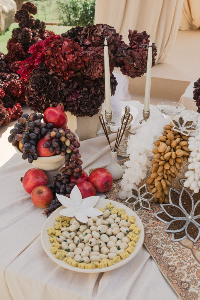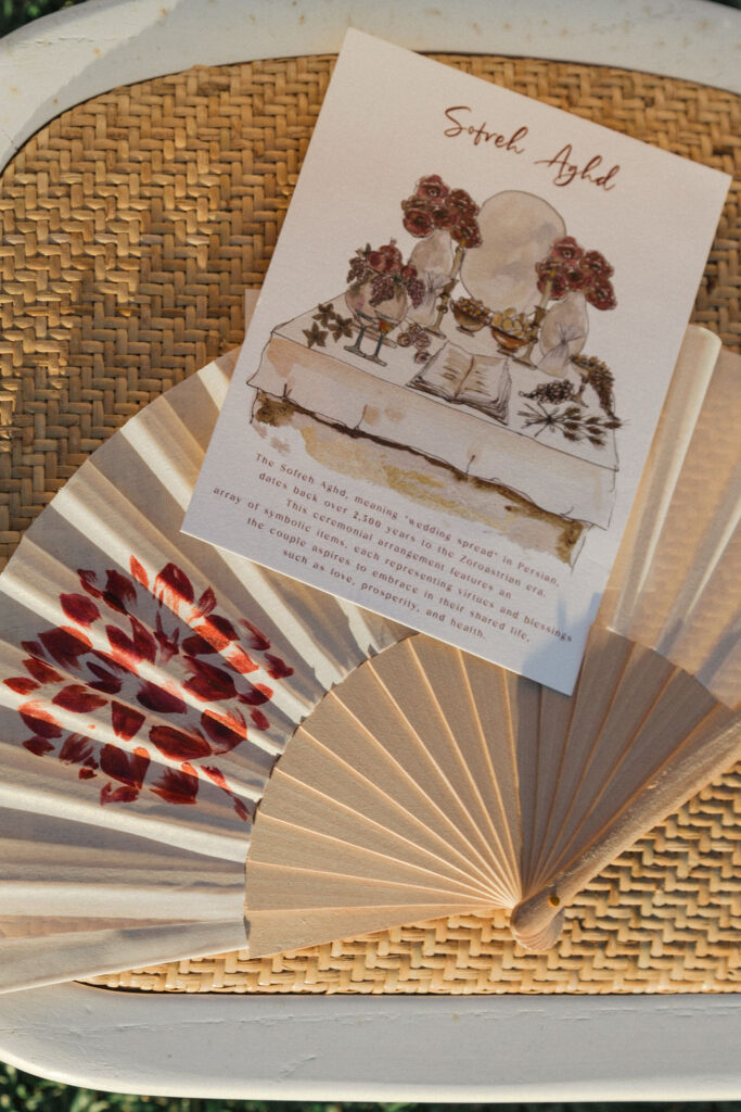 Their ceremony seamlessly blended Persian, Jewish, and Korean traditions, brought together under a symbolic houppah and a thoughtfully designed Sofreh table. The aesthetic direction was anchored in a powerful yet timeless palette of deep garnet red and pure beige, creating a striking contrast that felt intentional, warm, and deeply elegant.