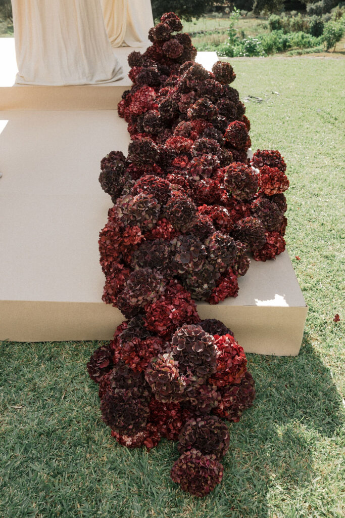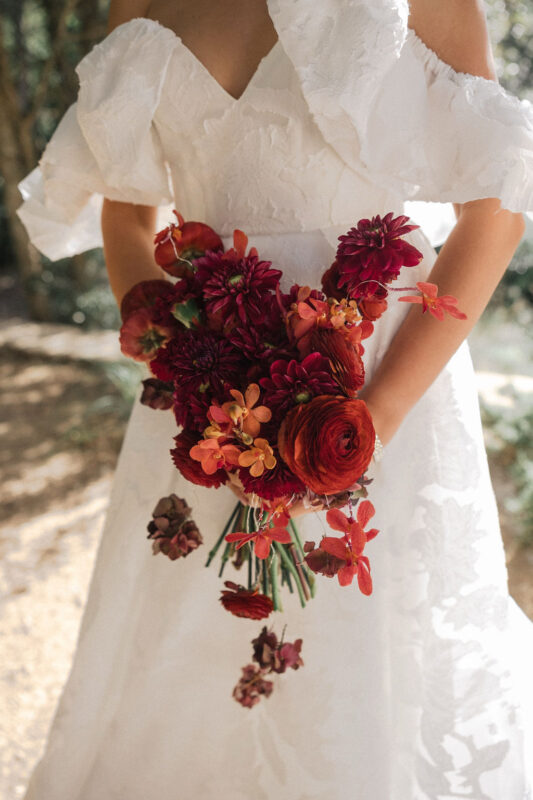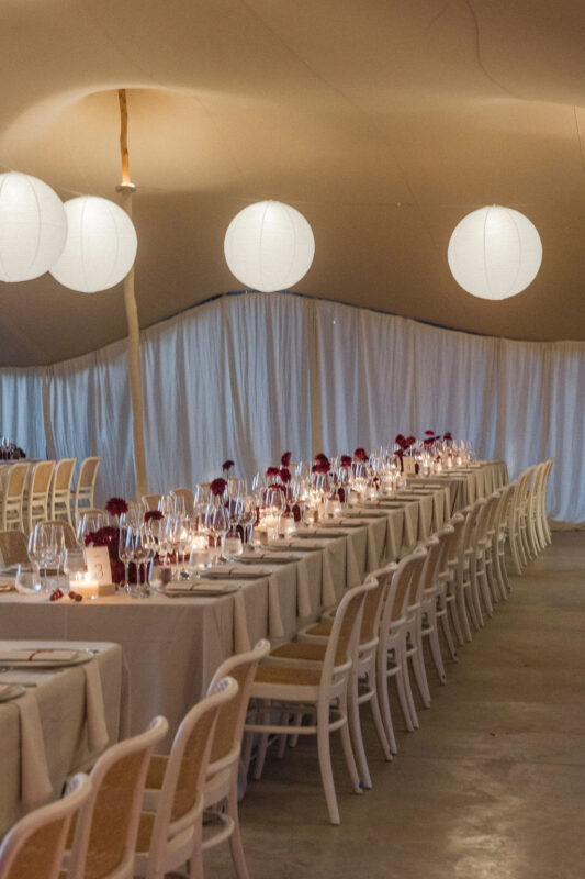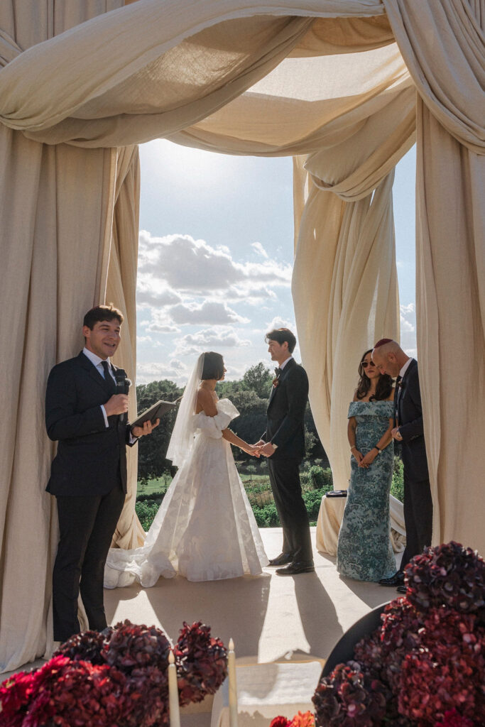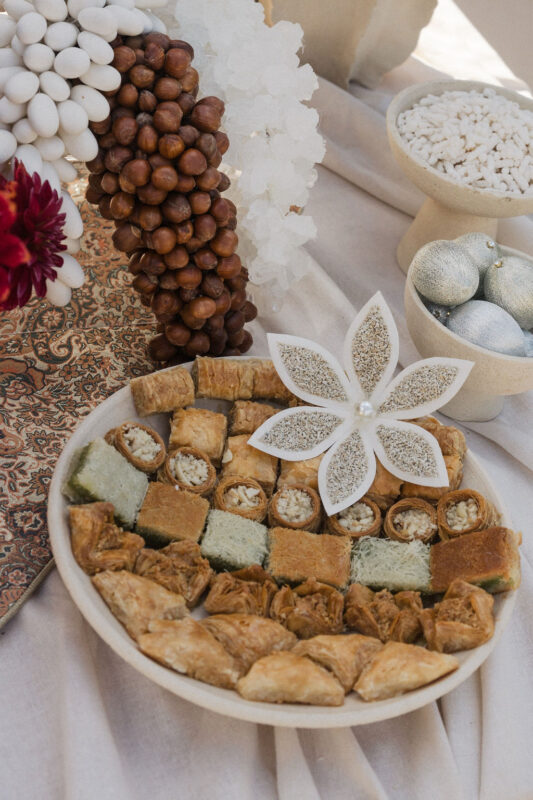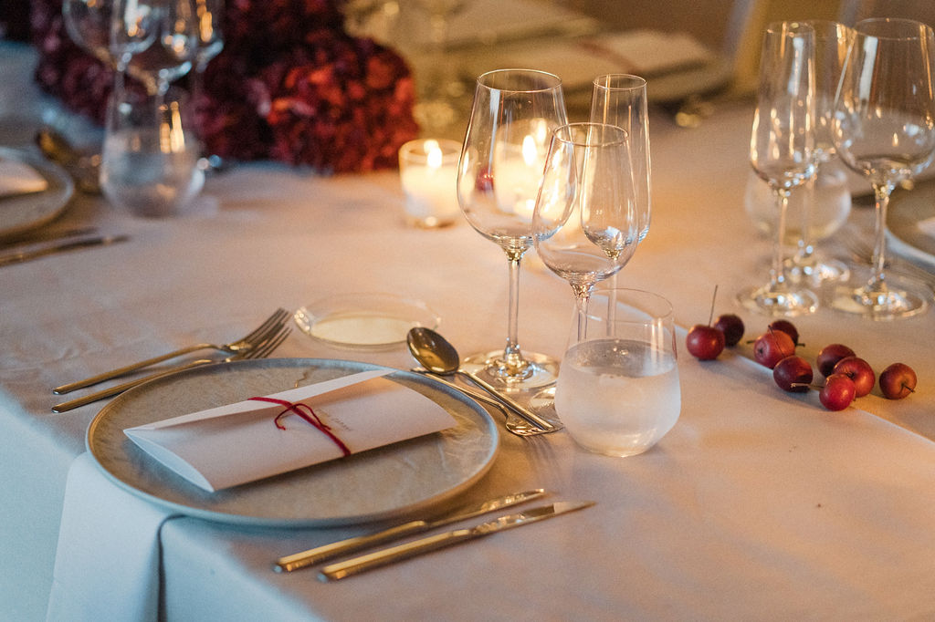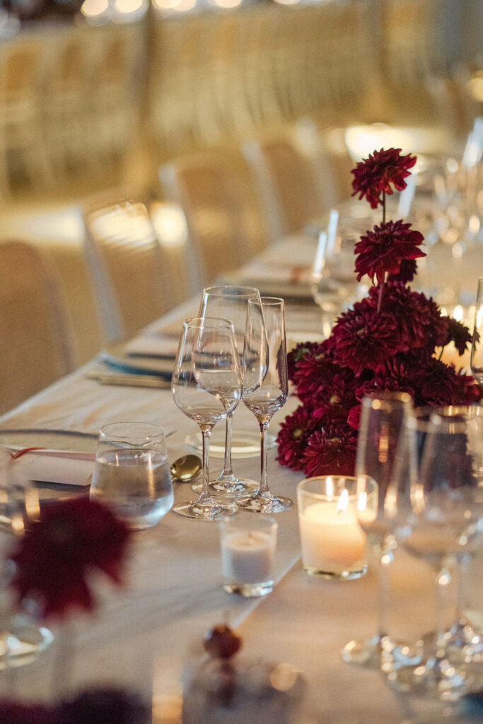 Their ceremony seamlessly blended Persian, Jewish, and Korean traditions, brought together under a symbolic houppah and a thoughtfully designed Sofreh table. The aesthetic direction was anchored in a powerful yet timeless palette of deep garnet red and pure beige, creating a striking contrast that felt intentional, warm, and deeply elegant.